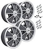 EMPI BRM STYLE WHEEL PACKAGE, 5-LUG EARLY VW BUG, BUS, BEETLE, 4PC SET, MATTE BLACK, #9676, 15 X 5, 5 ON 205MMEMPI now brings classic "BRM" styling to your Early 5-Lug VW Bug, Ghia, or Bus for that "Retro" look! Our complete package includes 4 EMPI BRM Style wheels #9675 in 15 x 5" size in Matte Black finish with Polished Lip. These are for VWs with the 5 on 205mm bolt pattern. No running around looking for parts either as The Pirate includes everything you need. Package includes 4 Wheels, Wheel Caps with BRM Logo, Valve Stems and Lug Nuts. When we say complete, we mean complete!